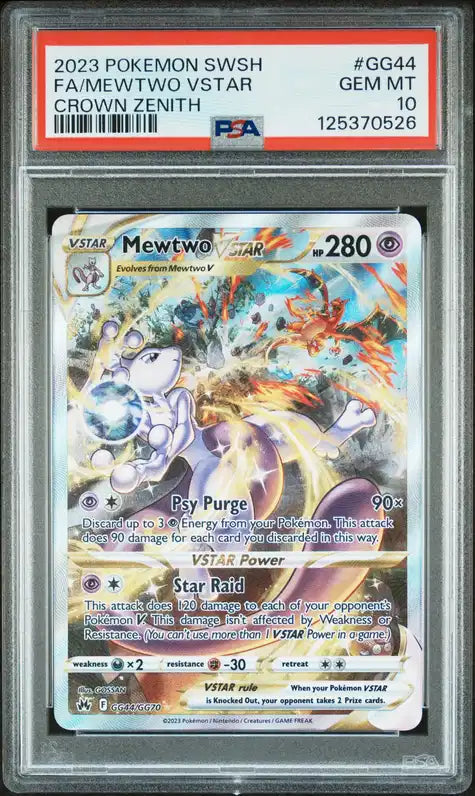 PSA graded Pokémon cards are authenticated and evaluated by Professional Sports Authenticator (PSA). Each card is examined for condition and assigned a grade from PSA 1 to PSA 10, with PSA 10 representing gem mint quality.