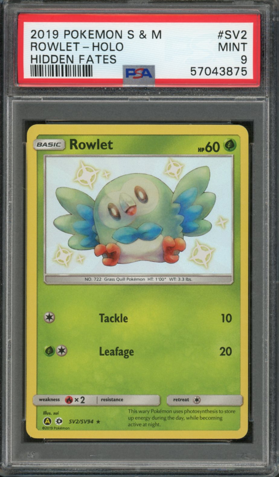 2019 Pokemon Sun and Moon Hidden Fates Shiny Vault Rowlet #SV2 PSA 9