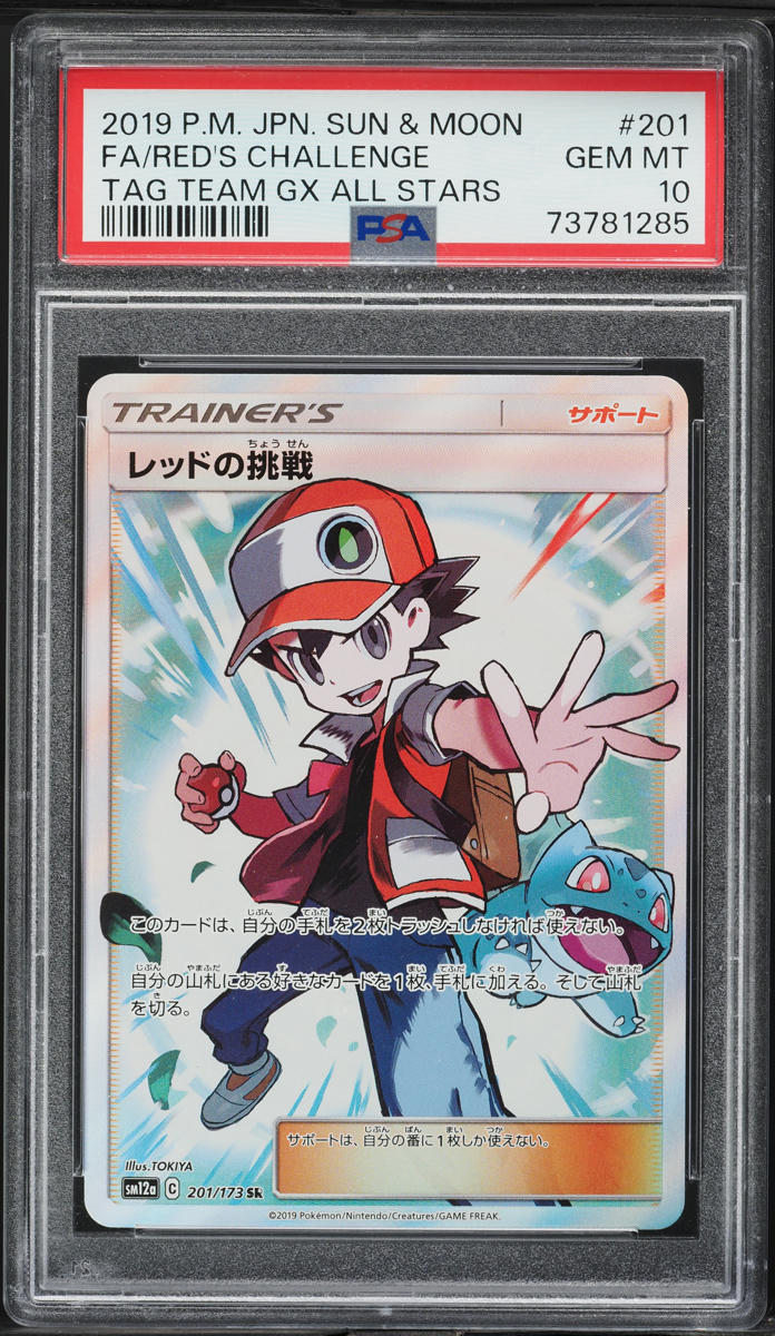 2019 Pokemon Japanese SM Tag Team GX Full Art Red's Challenge #201 PSA 10 GEM